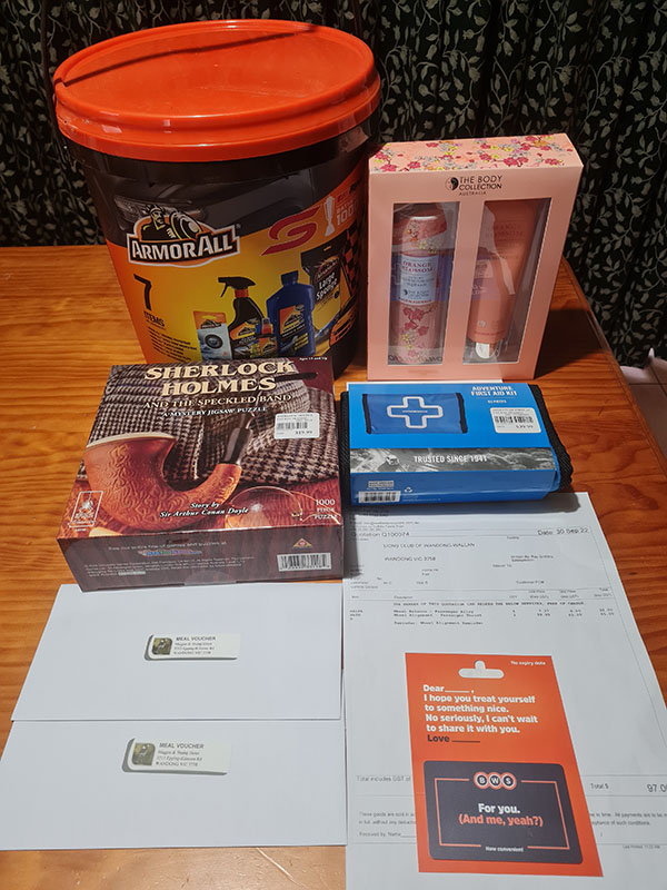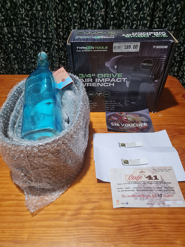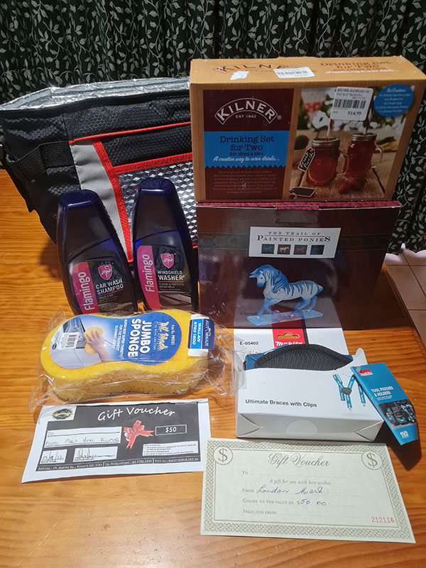 We have 12 gift hampers up for grabs with assorted products and vouchers generously donated by local businesses. View the images below to see the prizes.